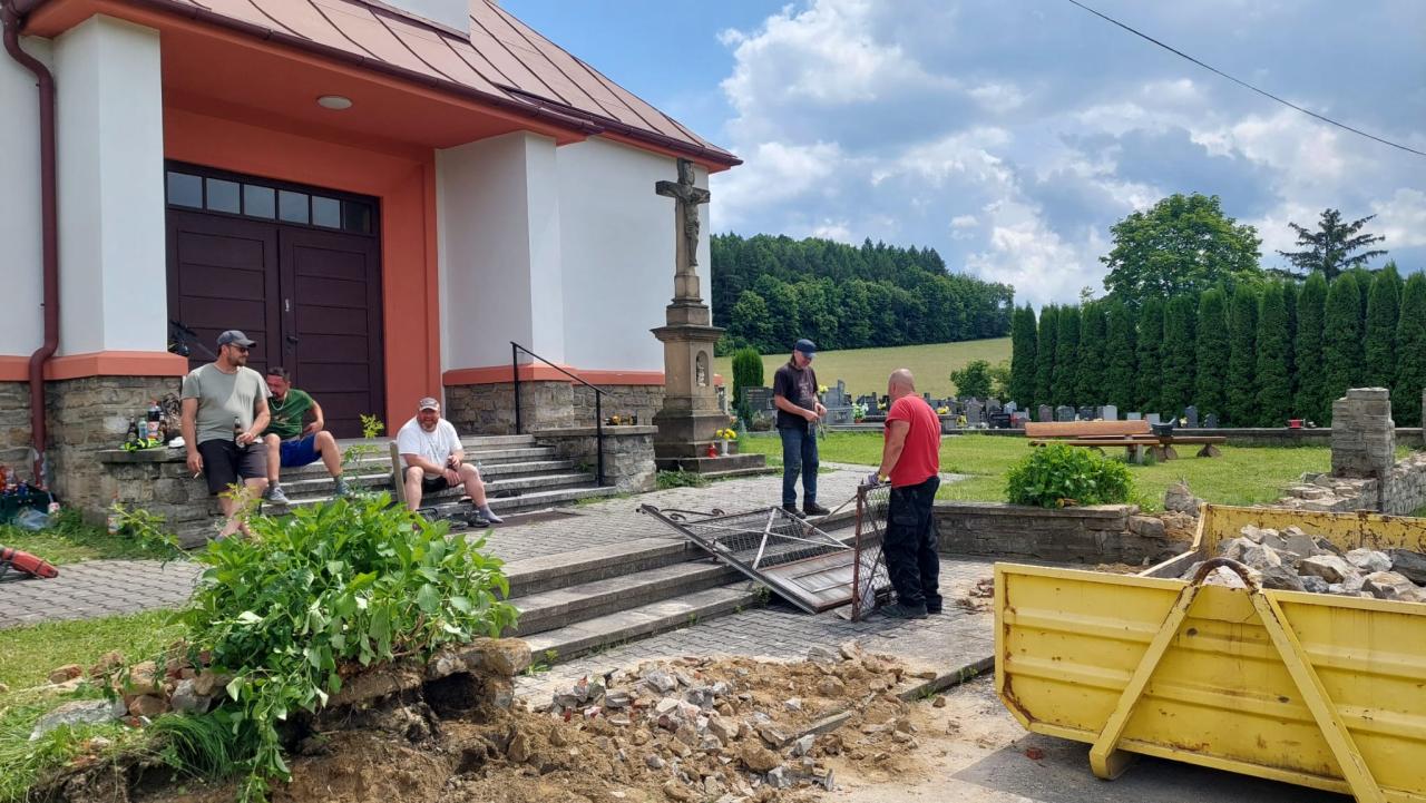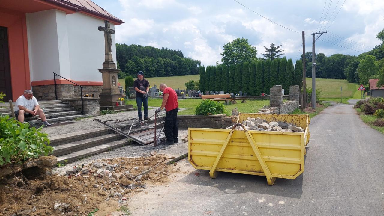 Brigáda bourání plotu u hřbitova 7.6.2025