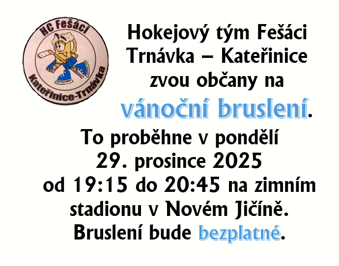 Hokejový tým Fešáci Trnávka – Kateřinice zvou občany na vánoční bruslení.